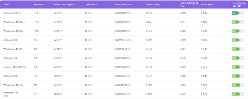 После выхода на рынок устройств Antminer S19 первую строчку по энергоэффективности занял S19 Pro с 30 W/TH, опередив Whatsminer M30S++ от MicroBT (31 W/TH).